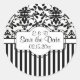 Black white Damask swirls, stripes Save the Date Classic Round Sticker