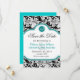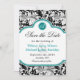 This listing is for a custom beautiful damask wedding stationery save the date featuring black and white damask with turquoise banner.