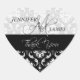 Heart-shaped Black and White Damask Wedding Favour Thank You Stickers personalised with Monogram. initial and bride and groom names. By Elke Clarke ©. An elegant way to label your wedding favours. Need a different colour combination? Contact us. More designs at http://www.luxuryweddinginvites.com. Graphics licensed for commercial use.