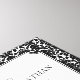 This elegant piece of keepsake displays the couple's names and a meaningful quote within a damask pattern frame. Names are set in classic fonts accented by a graceful ampersand. Quote or saying is set in elegant script.