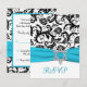 Black, White Damask with Aqua FAUX Ribbon RSVP Card