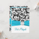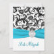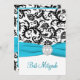 Black, White Damask with Aqua PRINTED RIBBON Invitation