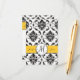 Elegant Black and White Damask Wedding Invitation Reception Enclosure Cards you can personalise. A beautiful damask pattern background is accentuated with a circular embellishment and monogram on top of a yellow line containing the bride and groom names. Photoshop effects with shadows gives this card a 3D layered look printed directly on your choice of paper. Wedding Reception Card Design by Elke Clarke ©2010, 2012. Graphics licensed. An elegant way to set the theme of your wedding. Personalise with your wedding details and wedding reception information and add to your wedding packet.