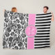 Black & White Damasks & Stripes Monogram Fleece Blanket