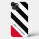 Black & White Diagonal Stripe, Name, Red Case-Mate iPhone Case