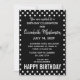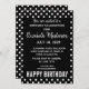 This invitation, with a black background, features a white polka dot pattern, perfect to celebrate anyone's birthday. Personalise the text to match your special occasion.