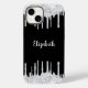 Black White Dripping Glitter Silver Monogram Case-Mate iPhone Case