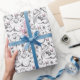 Black & White Easter Eggs, Chicks & Spring Flowers Wrapping Paper