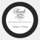 This thank you label features a hand-lettered “Thank you” in flowing black script on a white background, surrounded by refined spacing and clean serif type. The layout creates a soft yet confident visual tone, perfect for gifting or sealing wedding favours with elegance.