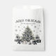 At the bottom of the design is the detailed artwork—a black and white Christmas tree with a soft green tint, surrounded by wrapped presents and delicate falling snowflakes. The clean watercolor style and minimalist layout make this favour bag a stylish and timeless way to package holiday treats, small gifts, or party favours.