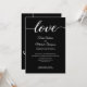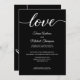 Simple, elegant black and white motif with a modern "Love" calligraphy script. Personalise this elopement wedding reception invitation with the bride and groom's names all the party details about the elopement and wedding reception. Include a wedding website. This chic and elegant layout design is easy to customise.