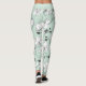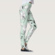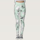 Modern leggings featuring an elegant floral pattern with beautiful and delicate black and white stylised orchids on a light mint background; the stripe on the waistband is plain mint.