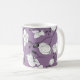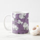 Elegant mug featuring a modern floral pattern with beautiful black and white stylised orchids on a trendy purple.