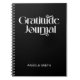 Minimalistic solid black colour background with white contemporary typography text art that says "Gratitude Journal".