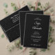 A clean minimalist wedding invitation design featuring elegant black style text on a white background. The layout is simple, modern, and focused on refined typography, making it suitable for contemporary weddings with a classic luxury aesthetic.