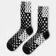 Modern Stylish Fashion Black and White Polka Dots Patchwork Of Different Sizes in one design, gives off a sense of classic minimalism high class fashion
