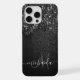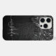 Black white faux sparkles rustic wood Monogram iPhone 15 Case. Personalise with your custom initial and name. Grey grey black and white glitter rustic wood. Elegant faux sparkly sparkles with broken rustic piece of wood over it. *photo of sparkles glitter!