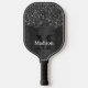 Black white faux sparkles rustic wood Monogram Pickleball Paddle