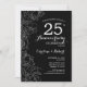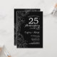 Black White Floral 25th Wedding Anniversary Party Invitation. Minimalist modern design featuring botanical outline drawings accents and typography script font. Elegant invite card perfect for a stylish celebration. Can be customized to any year of marriage. Printed Zazzle invitations or instant download digital printable template.