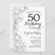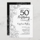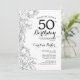 Black White Floral 50th Birthday Party Invitation. Minimalist modern design featuring botanical outline drawings accents and typography script font. Simple trendy invite card perfect for a stylish female bday celebration. Can be customised to any age. Printed Zazzle invitations or instant download digital printable template.