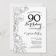 Black White Floral 90th Birthday Party Invitation