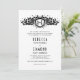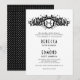 Black white floral heraldic crest initials wedding invitation