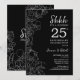 Black White Botanical Surprise 25th Wedding Anniversary Celebration Invitation. Minimalist modern design features botanical accents and typography script font. Simple floral invite card perfect for a stylish surprise anniversary party. Can be customised for any years of marriage. Printed Zazzle invitations or instant download digital printable template.