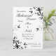 This elegant Black and White Floral Swirls Rehearsal Dinner Invitation on a 5 x 7 inch card is fully customisable and shown on metallic champagne paper. Elke Clarke©. Need help contact luxuryweddinginvitations@gmail.com