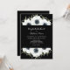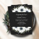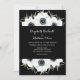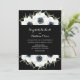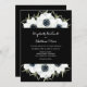 An elegant watercolor of black and white anemone flowers and leaves on a black background, your wedding ceremony details in chic white lettering on the front and your wedding details are on the back of this all in one invitation. MATCHING items in our store.