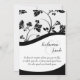 This fully customisable wedding invitation features a black background with white lettering & flowers accenting two of the corners. The reverse side has a slightly grey background with black floral accents. The back/front also features an area for the Bride & Groom's first names along with space for your favourite quote or scripture.