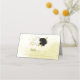 Beautiful wedding place card featuring black and white flowers and gold leaves .