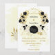 black & white flowers gold wedding invitation