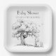 Black & White Forest Bear Baby Shower Paper Plate