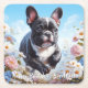 Black & White French Bulldog & Flowers Square Paper Coaster