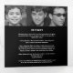 Simple modern graphic funeral program square shaped in monotone black and white. Replace the sample text and twelve placeholder photos with your own special photos and memorial order of service, obituary, reading or poem, and acknowledgements, and personal information details. Other matching funeral keepsake remembrance items are available. Design by www.mylittleeden.com