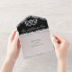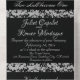 Black & White, Glitter Border & Double Hearts All in One Invitation. Romantic wedding themed all in one invitation features an elegant black pearl inside background, white pearl outside background, glitter borders, linked delicate silver scroll hearts and elegant script. Perfect for the simple to most elegant wedding. Also available with different coloured backgrounds for your wedding theme colours.