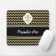 Black White Gold Fleur de Lis Chevron Stripes Mouse Mat
