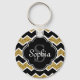Black White Gold Glitter Chevron Pattern Key Ring