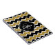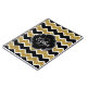 Stylish, trendy black, white, and faux gold glitter chevron zigzag pattern with a quatrefoil label frame on top featuring a customisable monogram initial letter and name template.