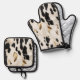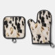 Black White Gold Southwest Cowhide Oven Mitt & Pot Holder Set