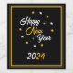 Black White & Gold Star Happy New Year 2024 Wine Label