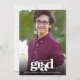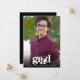 Be proud, rejoice and showcase this milestone of your favourite grad! Send out this stunning, simple, modern, personalised photo announcement for an event to remember. Bold, graphic, white typography overlays a photo of your choice. Personalise the custom text with your grad’s name, school and class year. On the back, under the bold “congrats” graphic, add your personal note, next school they’re attending – or whatever else you want to share. Matching invites, thank you cards, cap toppers, napkins, plates and other graduation goodies are also available in this trendy and stylish collection. Guaranteed to add stylish fun to their special occasion!