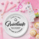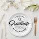 Be proud, rejoice and showcase this milestone of your favorite grad! Celebrate with these simple, modern yet retro, minimal custom paper plates. Bold, graphic, black handwritten script calligraphy, sans serif typography and a black hand drawn grad cap icon overlay a stark white background. Personalize the custom text with your grad’s name and address. Personalize the custom text with your graduate’s name, class year and school or special message. Available in 2 sizes: 7” or 9”, round or square. Matching invites, thank you cards, hand fans, banners, yard signs and other graduation goodies are also available in this retro and trendy collection. Guaranteed to add stylish fun to their special party!