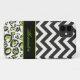 A trendy design with black and white chevron pattern and coordinating green, white and black animal print with black band accent, perfect for personalising with name or monogram, if desired.