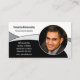 This business card design features a photograph on black, grey, and white abstract background with all text on the front. A back holds a QR Code. Personalise the text fields, remove text or edit using the design tool to select a font style, size, and colour you prefer. Replace the placeholder photo with yours (a square photo works best) and add a link for your QR code. The code can send customers to a page of referrals, photographs or other business related link. You can also add this design to the business card magnet or one of the other products, where it fits appropriately, shown in the TRANSFER scroll bar on this page.