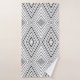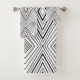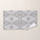 Here is a set of bath towels featuring a sophisticated, modern, geometric chevron abstract pattern of black, grey and white diamonds and stripes.