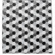 Honeycomb pattern shower curtain in shades of grey, black, and white.
