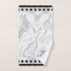 A unique pretty elegant black, white, silver and grey marble towel. Customise the script Monogram and name.