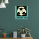 Black White Grey Teal Blue Soccer Ball Custom Name Poster