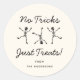 Black and White Hand Drawn Skeleton No Tricks Just Treats Halloween Sticker.